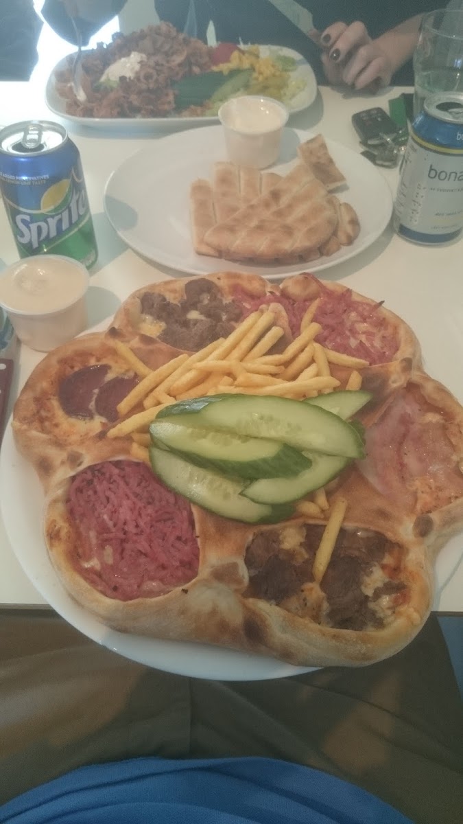 Best good pizza in town. I had the Vulkan2 pizzor, honestly it was very big, and i ate the last portion while i was full :) This menu would have been better for 2 persons. Its quiet, very clean, the staff is really nice, and they know good english, a plus for every restaurant i visit all across the world. I saw that most swedes came to take their pre-orders or takeout, so they do that very good also.