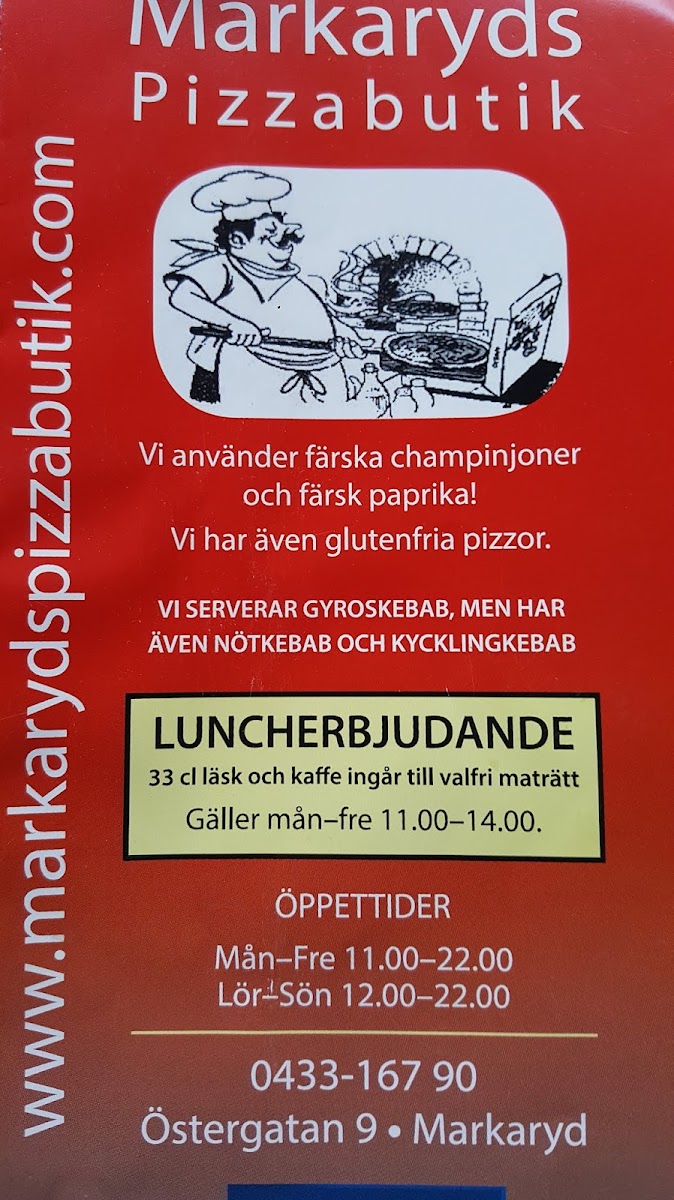 Markaryds Pizzabutik Menu